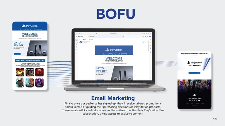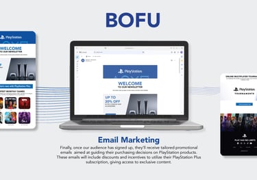 Bottom of the funnel: personalized email marketing and exclusive offers, encouraging potential customers to make the switch to PlayStation.