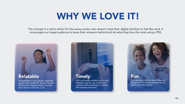 Designed to highlight PlayStation as a stress-free gaming console that offers a true mental escape.